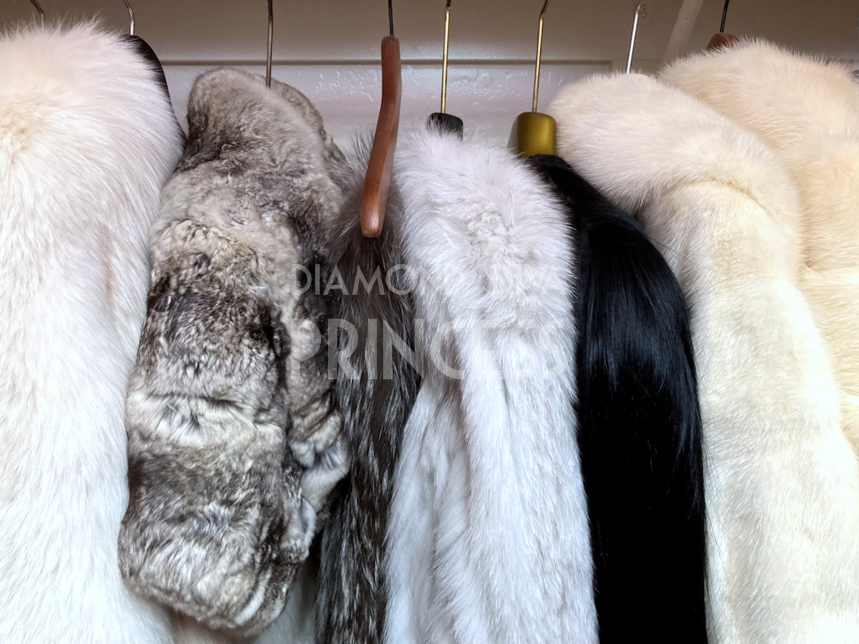 I ever so generously allowed My lucky little handbag zombie to pick up the tab on the newest lushy plushy addition to My Fine Fur Collection, a gorgeous vintage Hollywood Glam CHINCHILLA cape! Omg it is THE softest fur in the WORLD, darling! Gaze upon a selection of My extravagant furs in the fur wing of My walk-in closet, pictured all the way to the right is My White Mink Cape, with My CHINCHILLA fur cape second from the left. This gorgeous photo triggers My little mouse totally senseless and ultra-spendy!