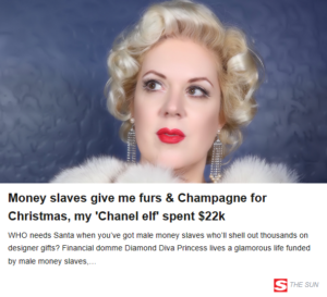 A new EXCLUSIVE about Diamond Diva Princess just published in The Sun worldwide! ‘PRINCESSMAS’ money slaves lavish me with rare furs and Champagne for Christmas – my ‘Chanel elf’ spent $22,000 in a few hours