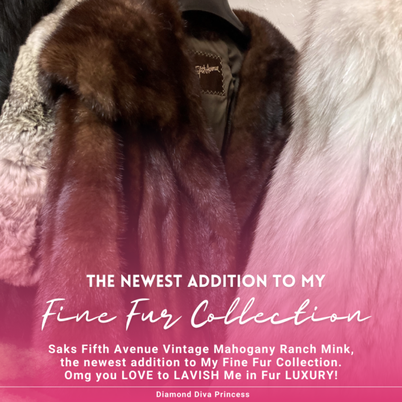 Behold the newest addition to My Fine Fur Collection, one of THREE new furs just added to the fur wing of My walk-in closet, ALL paid for by My lucky Handbag Zombie! This luxuriously ultra plush Saks Fifth Ave Vintage Mahogany Ranch Mink with glamorous shawl collar in striking contrast with My DIVINE BLONDE CURLS is guaranteed to unhinge the weakened resolve of his rickety wobbly wagon of resistance!