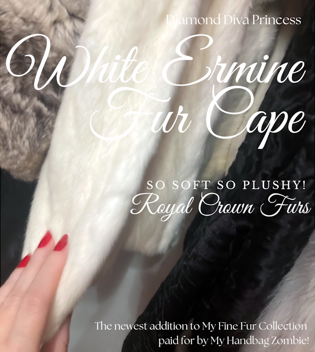 A recent acquisition to My Fine Fur Collection is this dramatic White Ermine Fur Cape, the ultimate in Golden Age of Hollywood Fur Glamour, paid for by My lucky Handbag Zombie! One of very few pristine White Ermine Furs in the world, of which I now personally own THREE! Can you even imagine it?! How absolutely decadently DIVOON dahling! And YOU pay for it ALL!! $$$$$$$